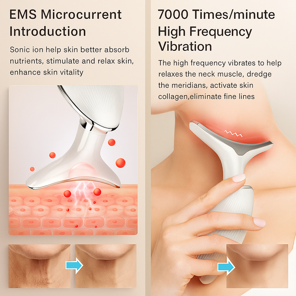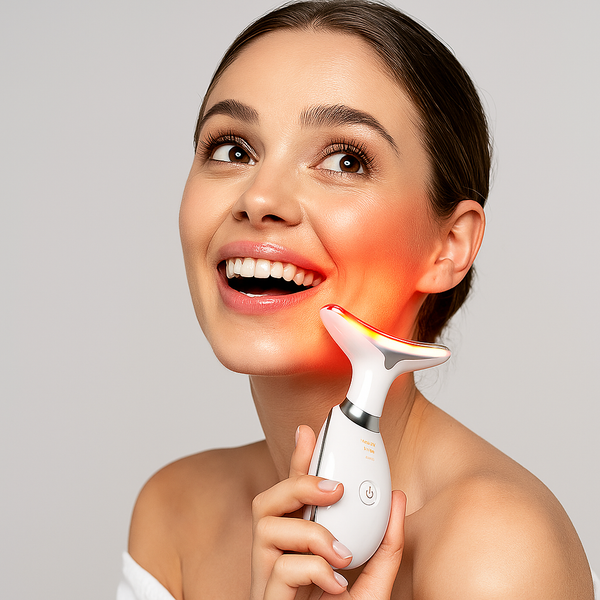 Masażer twarzy oferuje wyjątkowe połączenie relaksu, jędrności, blasku i nawilżenia w jednym urządzeniu. Technologia LED + EMS + ciepło 45°C + 10 000 wibracji/min – to wszystko zamknięte w jednym eleganckim urządzeniu, które daje efekt jak po wizycie w salonie kosmetycznym.